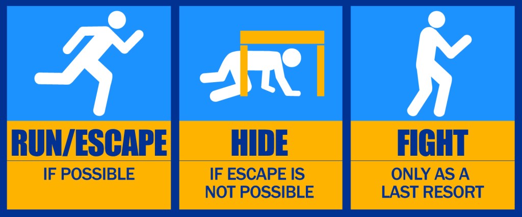 - Strategies to Avoid, Deny, Defend (also termed Run, Hide, Fight)